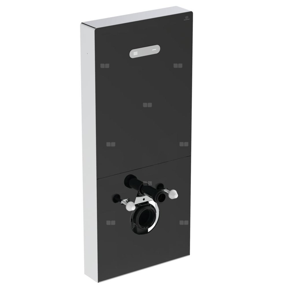 Do miski wiszącej WC. Do bezpośderniego montażu na ścianie bez konieczności zabudowy, pracy wykończeniowych, szybkie odnowienie łazienki. Szybka instalacja na istniejących przyłączach wody i kanalizacji. Rama modułu mocowana do ściany nośnej. Pneumatyczny system spłukiwania przyciskiem ze stali nierdzewnej. Obudowa wykonana w jednej cześci ze szczotkowanej stali nierdzewnej. Przyłącze wody doprowadzone wewnątrz obudowy lub 4 punktach na zewnątrz modułu, odpływ standarowe wyjście. Głąbokość od ściany 108 mm. Panel przedni wykonany z hartowanego szkła gr. 6 mm (dzielone na 2 cześci) w kolorze białym lub czarnym: - panel przedni z czernego szkła. panel przedni z białego szkła. Zbiornik spłukujący. Spłukiwanie 2 funkcyjne, fabryczne ustawienie 6/3 l. Zbiornik spłukujący wykonany z polipropylenu (PP), odporny na temperaturę, wyposażony w obudowę antykondensacyjną. Zawór SmartValve (oszczędność do 9 l wody/dzień), oznaczenie CE EN 14055 CL1, cichy zawór, zgodny ze standardami NF, klasa akustyczna pracy I. Elementy w komplecie: - Rura odpływowa ø 56 x 200. Rura dopływowa ø 45 x 180. Gumowa uszczelka do miski ø 45. Kolano odpływowe i adpater ø90/110. Zestaw montażowy.