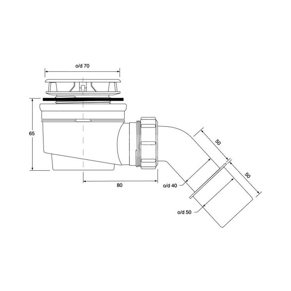 Syfon brodzikowy "niski" wys.65mm z odejściem 40/50mm czyszczony od góry ,pokrywa stal nierdzewna 70mm
