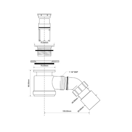 Syfon brodzikowy wys.90mm z odejściem 40/50mm czyszczony od góry ,pokrywa mosiądz STAL SZCZOTKOWANA 70mm