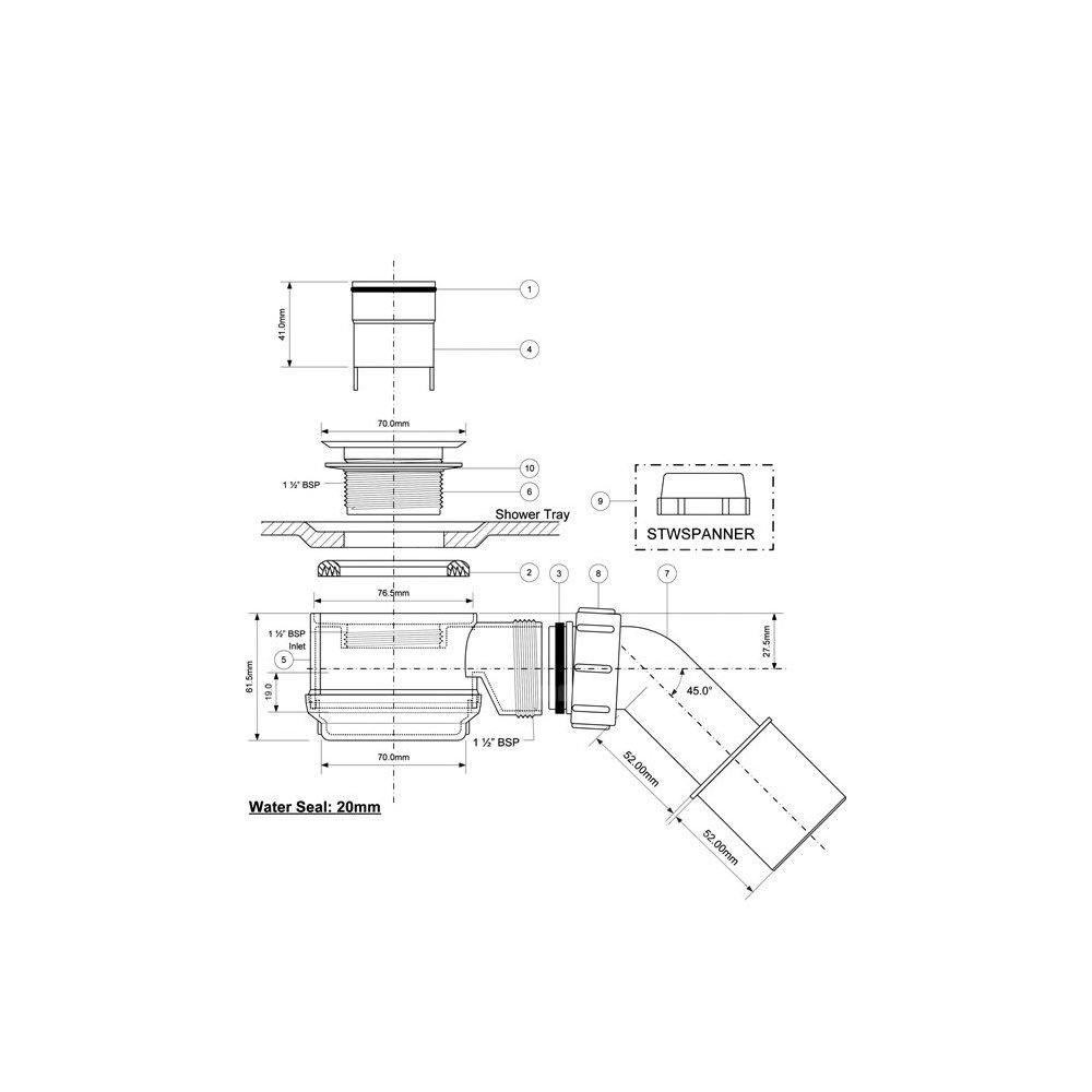 Syfon do odpływów liniowych. Wysokość syfonu: 61,5mm.