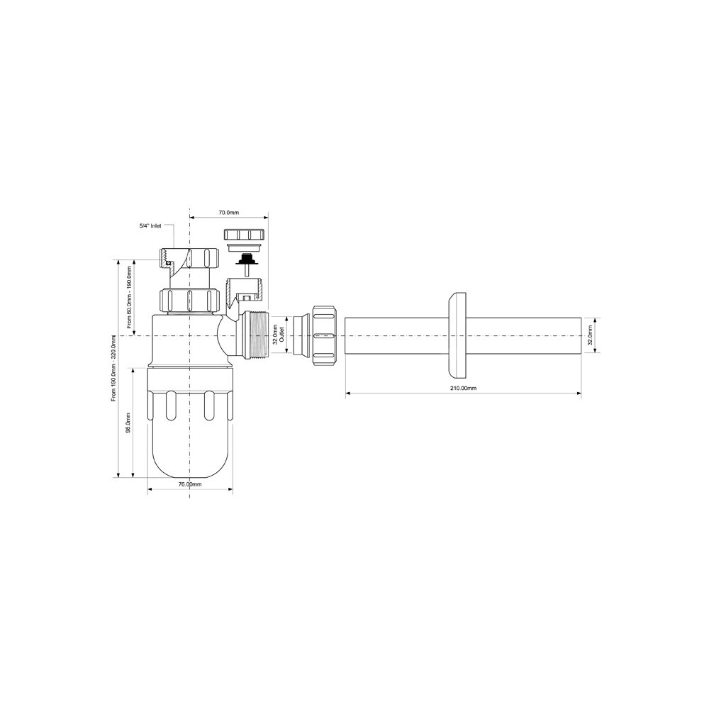 Syfon umywalkowy butelkowy "gastronomiczny" 11/4"x32mm z napowietrznikiem bez spustu