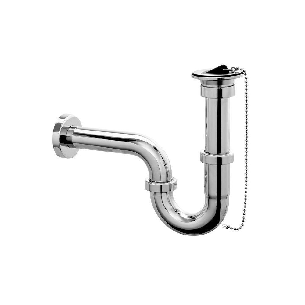 Syfon umywalkowy rurowy 1.1/4″32mm wykonany z mosiądzu pokryty warstwą chromu ze spustem i korkiem gumowym.