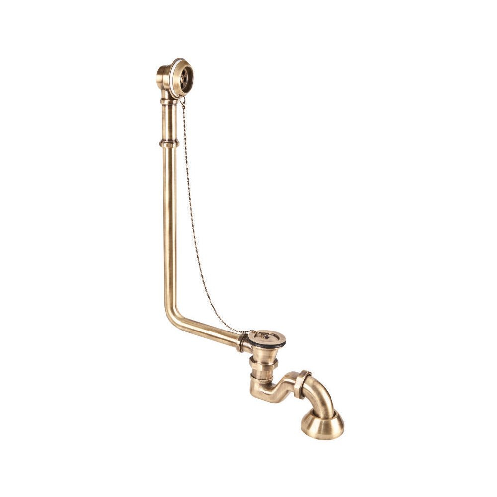 Syfon wannowy zewnętrzny dekoracyjny wyposażony w korek dekoracyjny z łańcuszkiem. Kolor Antyczny mosiądz.