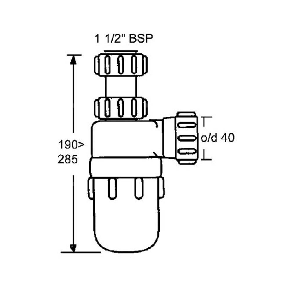Syfon zlewozmywakowy butelkowy "duży" 11/2"x40mm, bez spustu. Przeznaczenie -do zlewozmywaków gastronomicznych.
