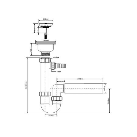 Syfon zlewozmywakowy rurowy 11/2"x50mm z podłączeniem do pralki lub zmywarki, ze spustem 113mm.
