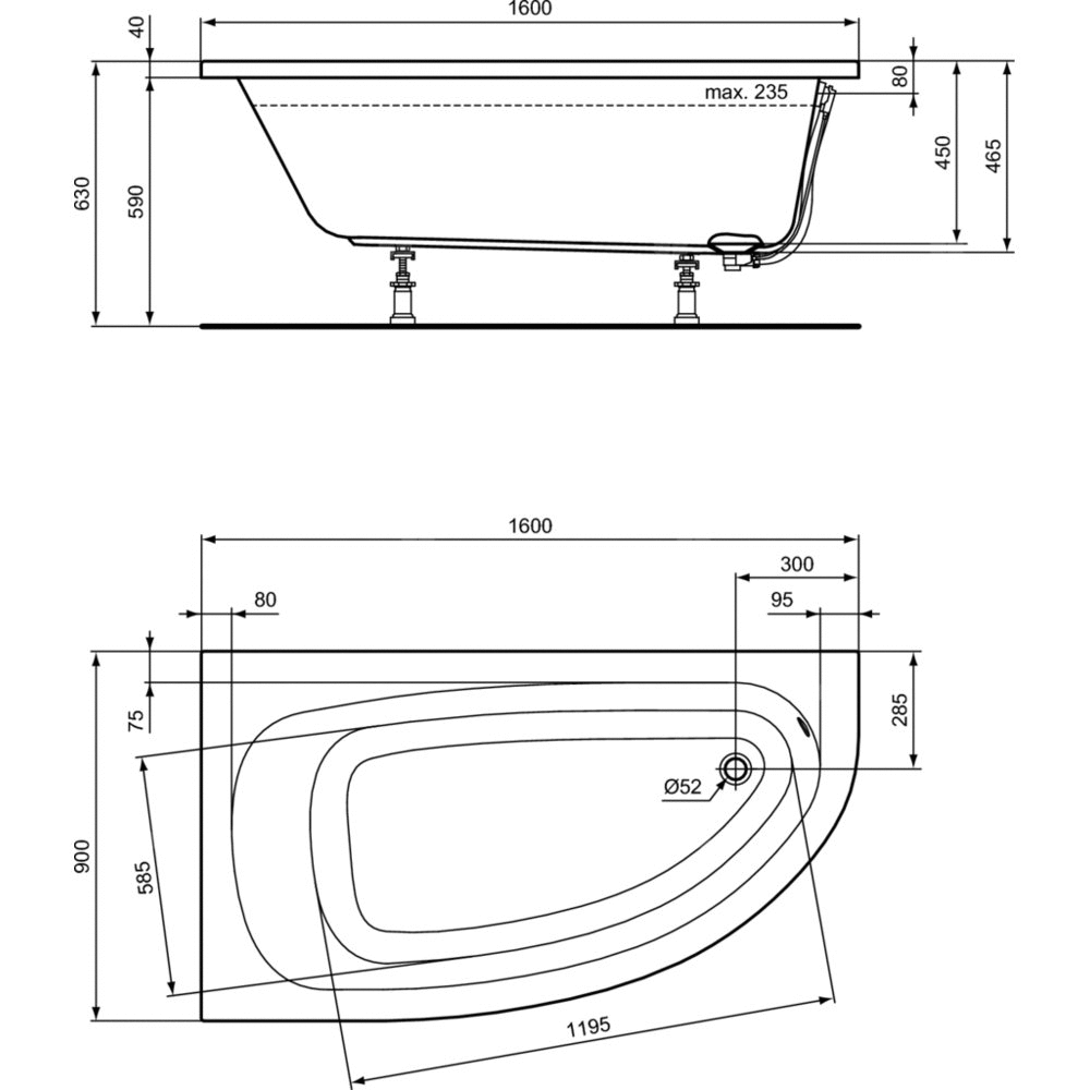 Wanna wykonana z wysokiej jakości akrylu sanitarnego gr 4 mm. Pojemność wanny 235 l. EN 14 516. Zalecane dodatkowe elementy: Uniwersalny zestaw montażowy do wanien do zabudowy (kompletny zestaw z regulowanymi nogami do wanny - 4 szt., profile do zamocowania nóg -2 szt., metalowe elementy do zamocowania wanny do ściany -3 szt.) K727467. Zestaw odpływowo - przelewowy MULTIPLEX, Ø52 mm, chromowana pokrywa K7804AA. Zestaw odpływowo - przelewowy MULTIPLEX TRIO z funkcją napełniania wanny przez przelew, Ø52 mm, chromowana pokrywa K7807AA.