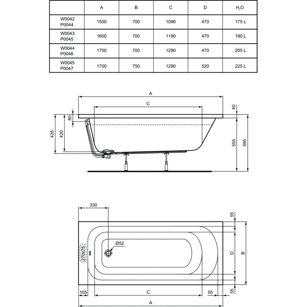 Wanna akrylowa Simplicity z bocznym otworem na syfon i przelew: Ø 52 mm. Wykonana z wysokiej jakości akrylu sanitarnego 3,2 mm z drewnianym wzmocnieniem konstrukcyjnym dna i krawędzi.
