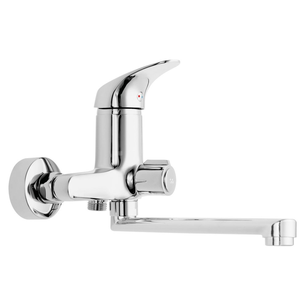Bateria umywalkowa z funkcjonalną, ruchomą wylewką. Uniwersalne przyłącze 1/2" umożliwia zastosowanie dowolnego zestawu natryskowego. Ceramiczny, ergonomiczny przełącznik wylewka/natrysk zapewnia łatwość w obsłudze.