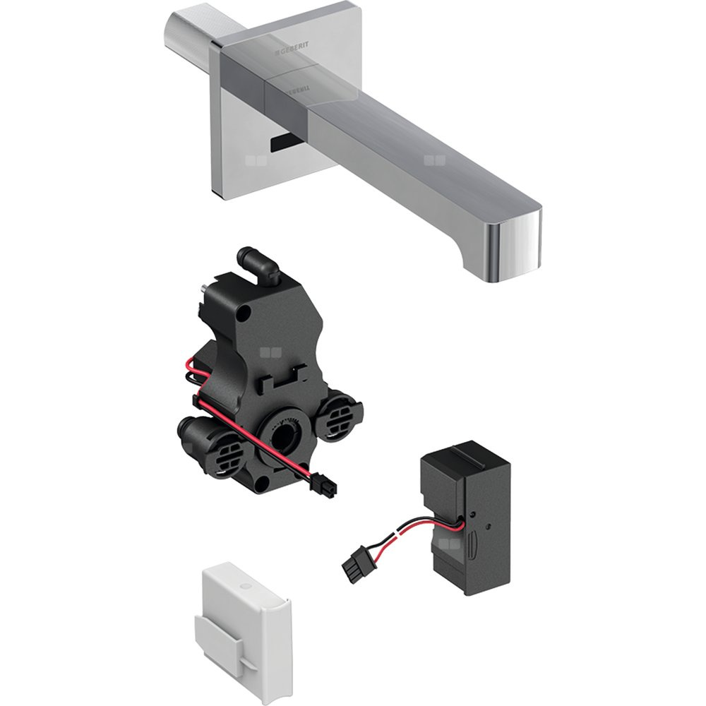 Bateria umywalkowa Geberit Brenta, ścienna, zasilanie sieciowe, do podtynkowej skrzynki funkcyjnej, z mieszaczem, L17, chrom