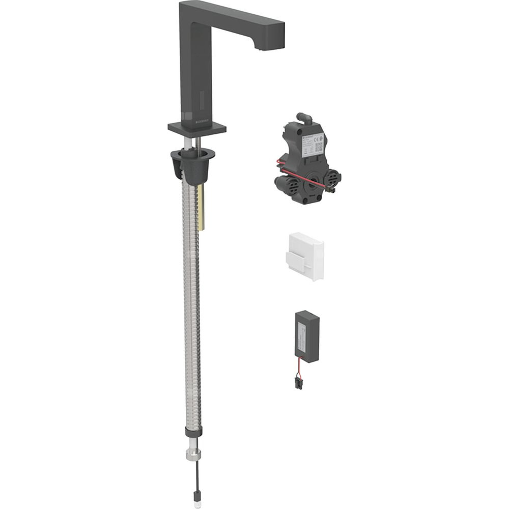 Bateria umywalkowa Geberit Brenta, stojąca, zasilanie bateryjne, do podtynkowej skrzynki funkcyjnej, bez mieszacza, czarny mat
