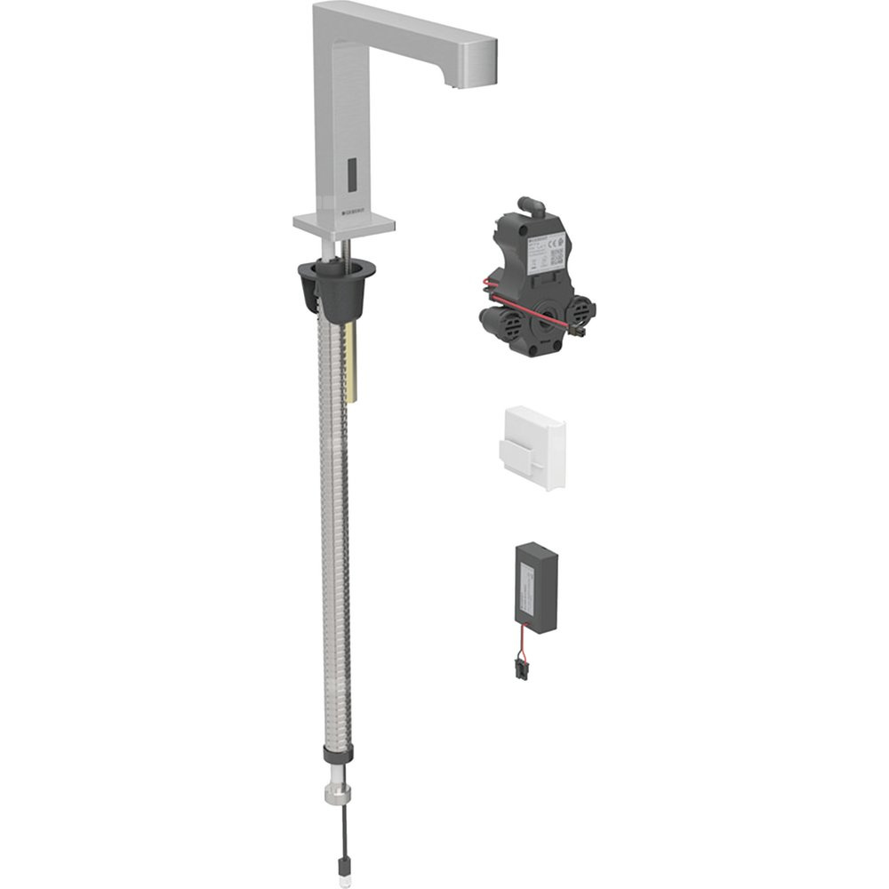 Bateria umywalkowa Geberit Brenta, stojąca, zasilanie bateryjne, do podtynkowej skrzynki funkcyjnej, z mieszaczem, stal nierdzewna