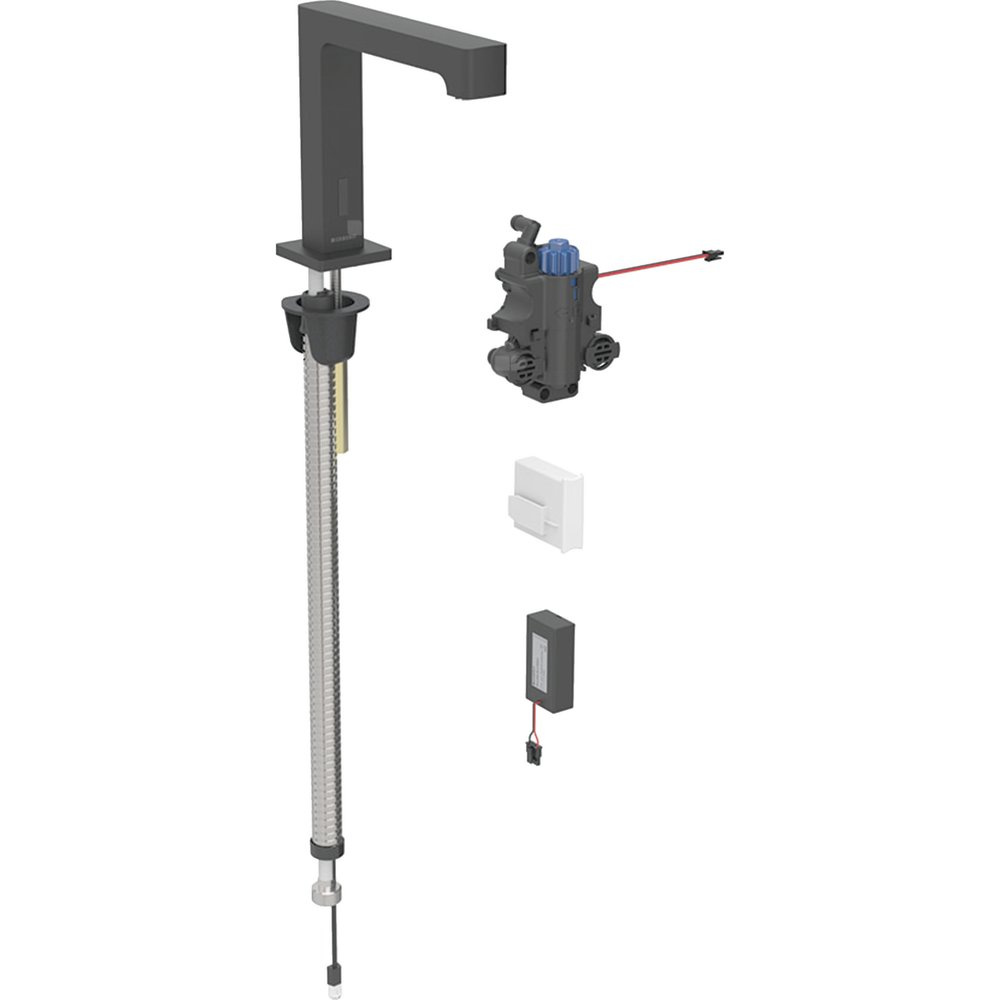 Bateria umywalkowa Geberit Brenta, stojąca, zasilanie bateryjne, do podtynkowej skrzynki funkcyjnej, z mieszaczem termostatycznym, czarny mat