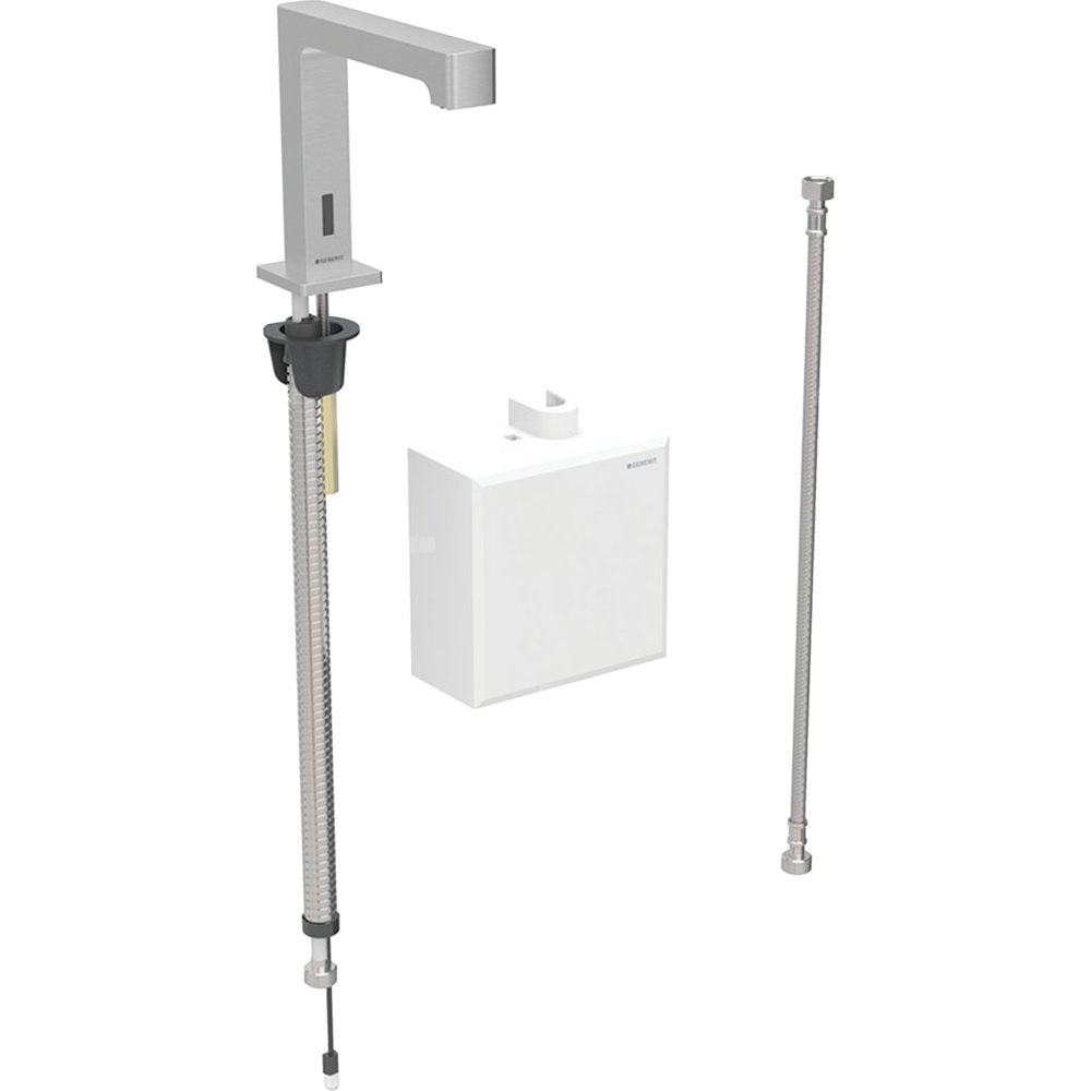 Bateria umywalkowa Geberit Brenta, stojąca, zasilanie bateryjne, z natynkową skrzynką funkcyjną, bez mieszacza, stal nierdzewna