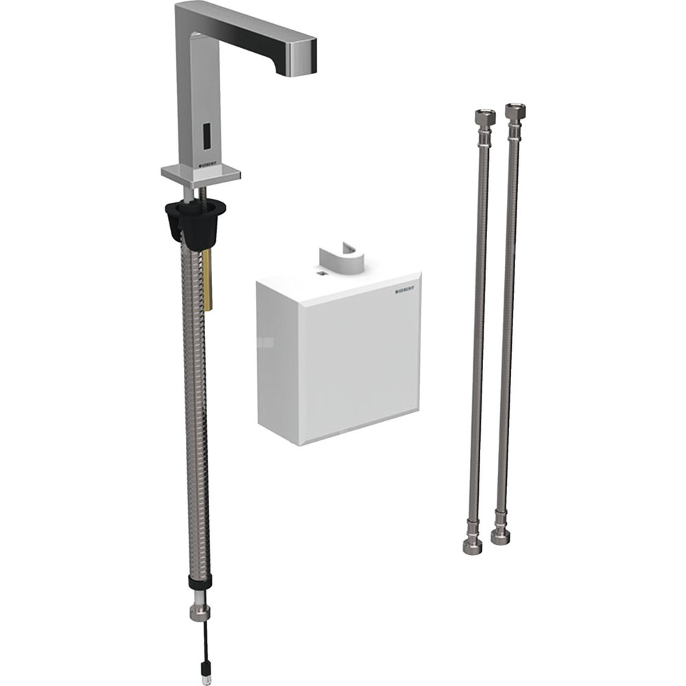 Bateria umywalkowa Geberit Brenta, stojąca, zasilanie bateryjne, z natynkową skrzynką funkcyjną, z mieszaczem, chrom