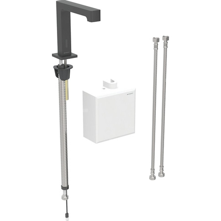 Bateria umywalkowa Geberit Brenta, stojąca, zasilanie generatorowe, z natynkową skrzynką funkcyjną, z mieszaczem, czarny mat