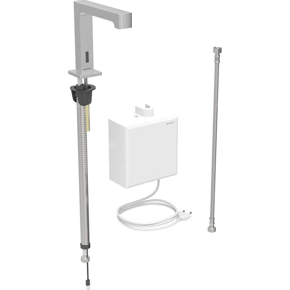 Bateria umywalkowa Geberit Brenta, stojąca, zasilanie sieciowe, z natynkową skrzynką funkcyjną, bez mieszacza, stal nierdzewna