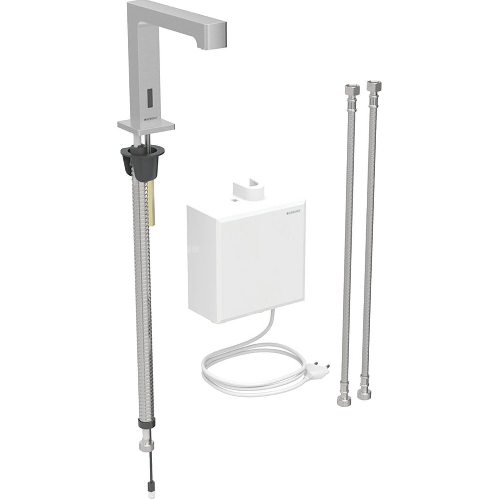 Bateria umywalkowa Geberit Brenta, stojąca, zasilanie sieciowe, z natynkową skrzynką funkcyjną, z mieszaczem, stal nierdzewna