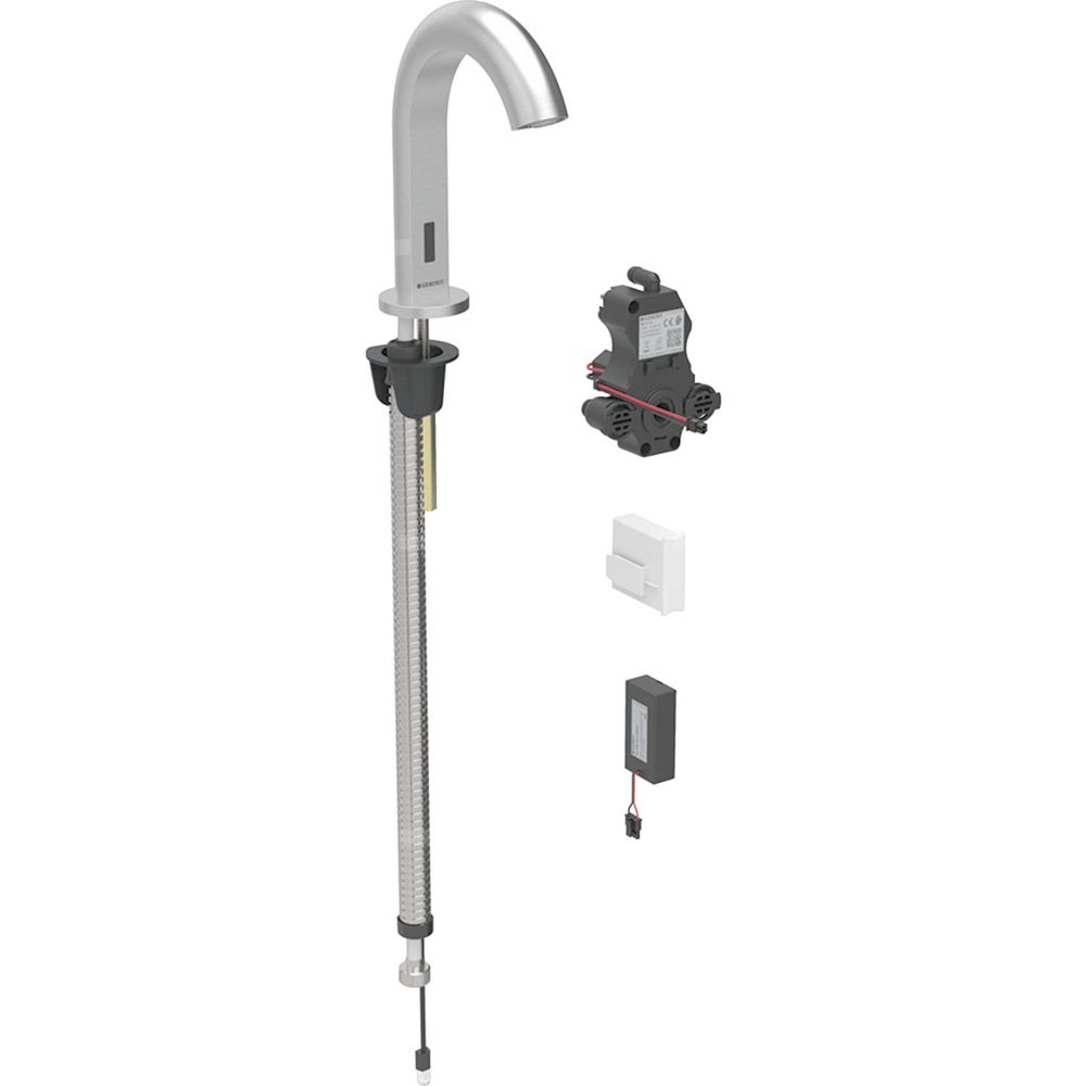 Bateria umywalkowa Geberit Piave, stojąca, zasilanie bateryjne, do podtynkowej skrzynki funkcyjnej, bez mieszacza, stal nierdzewna