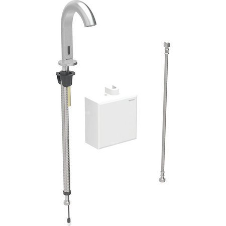 Bateria umywalkowa Geberit Piave, stojąca, zasilanie bateryjne, z natynkową skrzynką funkcyjną, bez mieszacza, stal nierdzewna