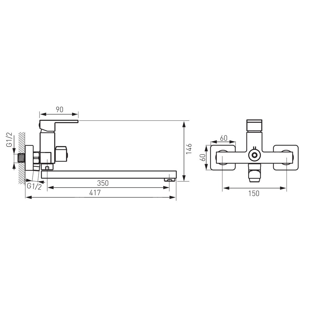 Bateria umywalkowo-wannowa ścienna FERRO ZICCO, kolor chrom, montaż z zestawem natryskowym
