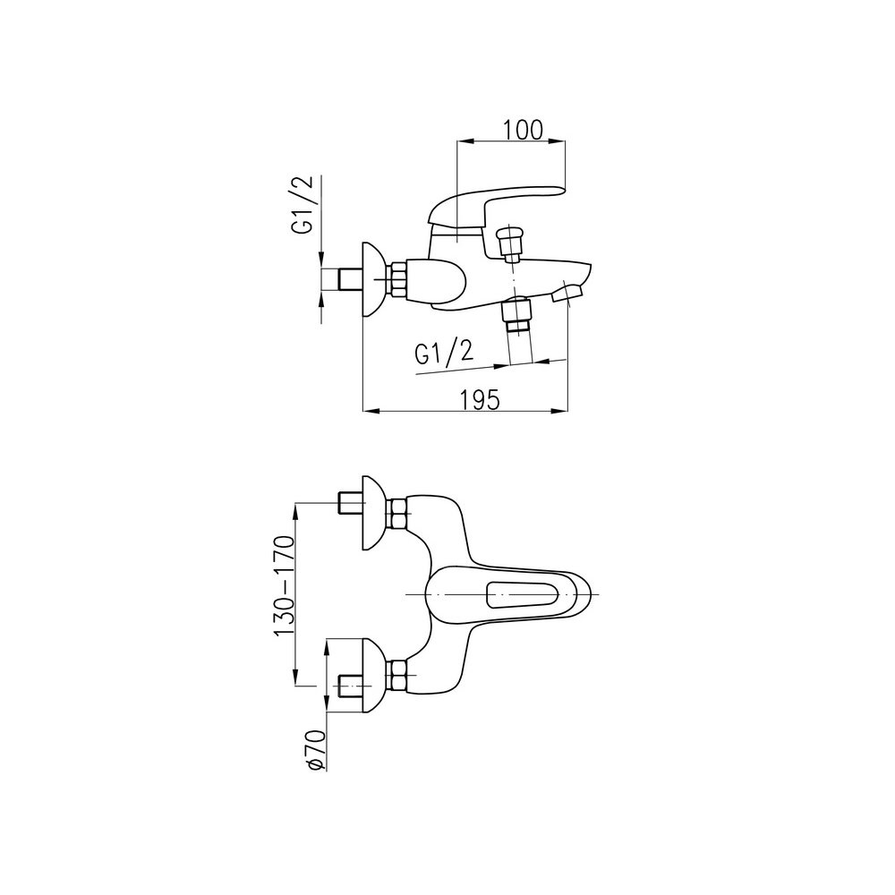 Bateria wannowa ścienna KFA Armatura ALBIT, kolor chrom
