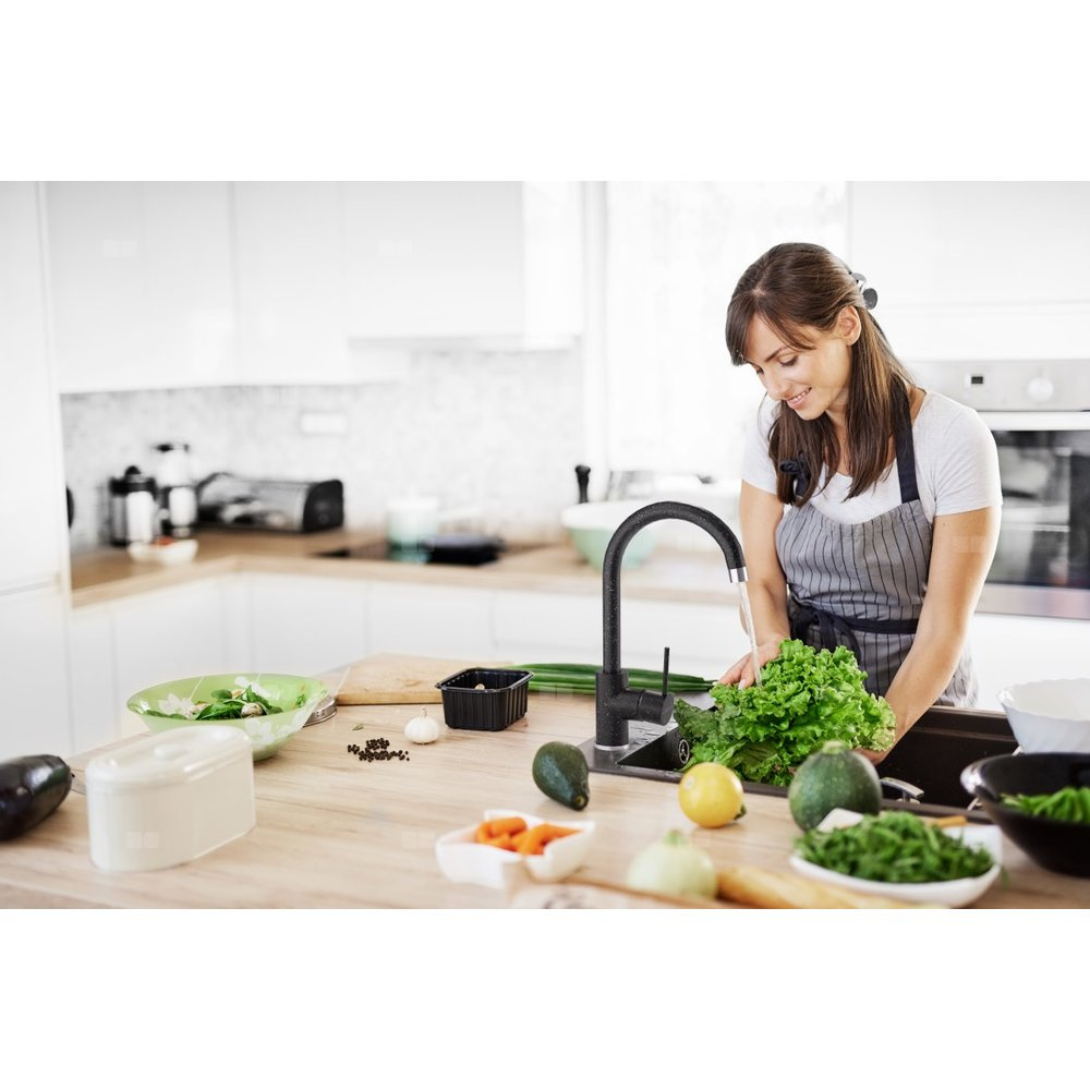 Bateria zlewozmywakowa o uniwersalnym, cylindrycznym dizajnie pasującym do każdej aranżacji. Obły kształt korpusu ułatwi utrzymanie baterii w czystości, krople wody nie będą osiadać, pozostawiając przy tym mniej osadu wapiennego. Obrotowa wylewka baterii dodatkowo zwiększa jej funkcjonalność.