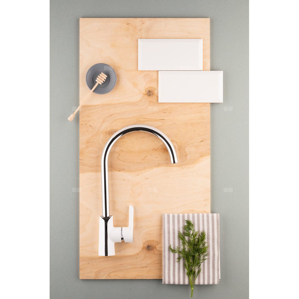 Bateria zlewozmywakowa stojąca KFA Armatura ANGELIT, kolor chrom, biała, mosiądz