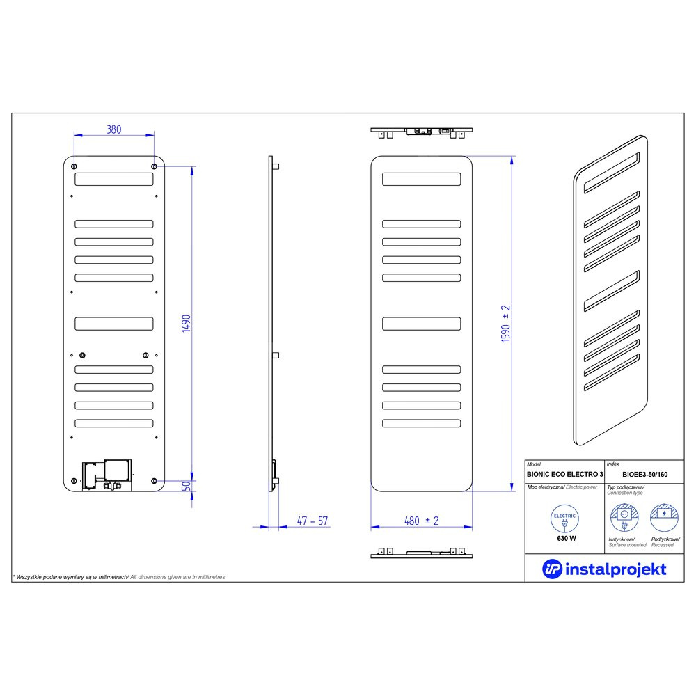 Grzejnik elektryczny NAMELESS ELECTRO NAME-60-120C34+GH-06C1U BIAŁY-WHITE MAT WERSJA PODTYNKOWA