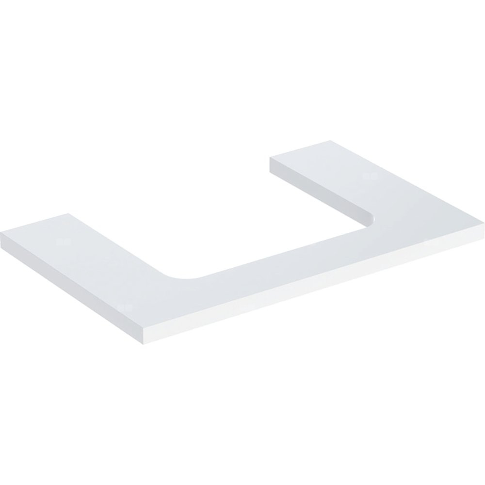 Blat pod umywalkę Geberit ONE z wycięciem, do prostokątnej umywalki nablatowej: B=74.6cm, Biały, Przekrój=Na środku, Lakierowany na wysoki połysk