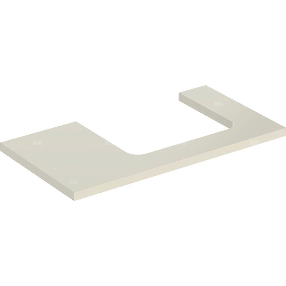 Blat pod umywalkę Geberit ONE z wycięciem, do prostokątnej umywalki nablatowej: B=89.4cm, Piaskowy szary, Przekrój=Prawa strona, Lakierowany na wysoki połysk