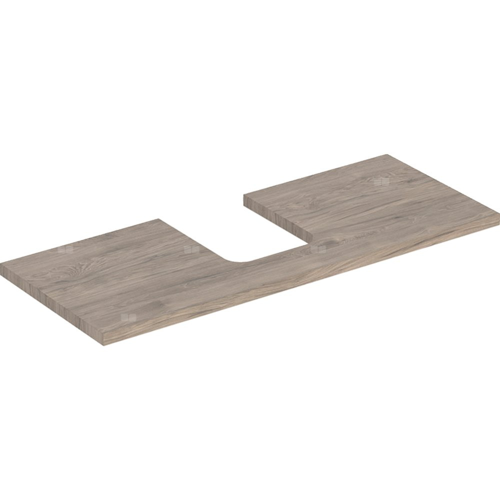 Blat pod umywalkę Geberit ONE z wycięciem, do umywalki nablatowej w kształcie misy: B=119cm, Orzech włoski hickory, Melamina, struktura drewna, Przekrój=Na środku