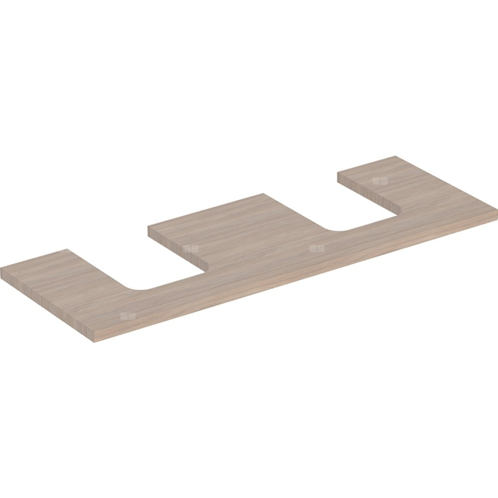 Blat pod umywalkę Geberit ONE z wycięciem, do umywalki nablatowej w kształcie misy: B=133.8cm, Dąb, Melamina, struktura drewna, Przekrój=Lewa i prawa strona
