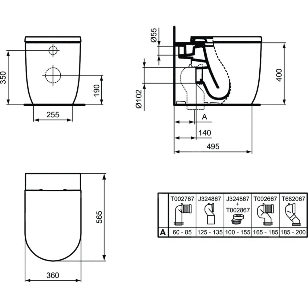 • Typ spłukiwania: Lejowe, poziomy odpływ