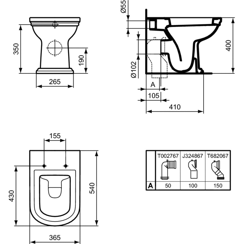 Miska WC uniwersalna Calla. Mocowana tyłem do ściany z odpływem poziomym. Zawiera zestaw montażowy.