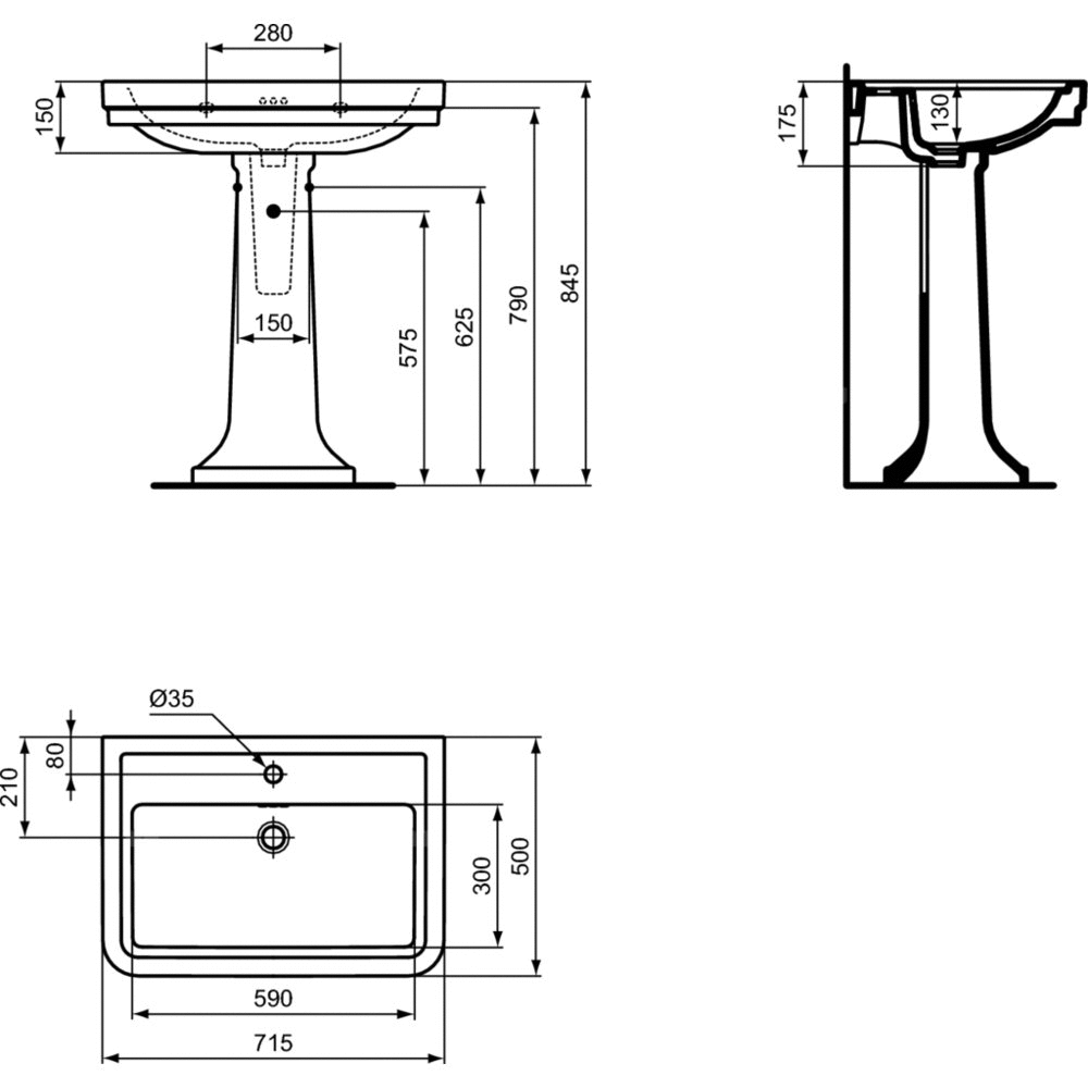 Umywalka wisząca Calla z 1 otworem na baterię wybijanym i przelewem (z 3 otworami). Do montażu z: Calla Pedestal lub samodzielnie z syfonem Design. Zobacz listę wyposażenia opcjonalnego w katalogu/cenniku Atelier Collections.