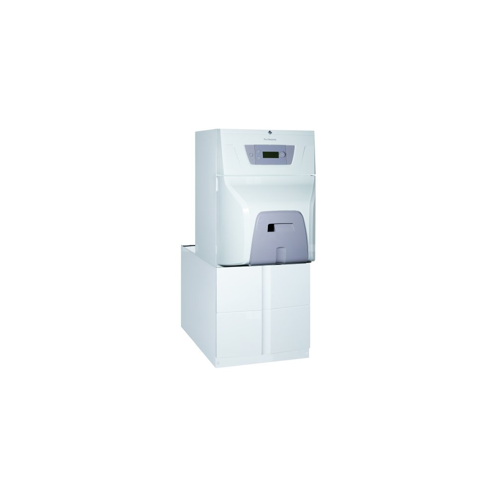 Kocioł o konstrukcji modułowej z emaliowanym podgrzewaczem c.w.u. o pojemności 160 litrów z wężownicą, umieszczonym poziomo pod kotłem przy ścianie dla utworzenia kolumny o jednolitym wyglądzie i zmniejszonej głębokościOchrona przy pomocy anody magnezowejPrzewody połączeniowe kocioł/podgrzewacz z modulującą pompą ładującą o wskaźniku energochłonności pomp EEI < 0,23 oraz czujnik c.w.u. w zakresie dostawy, regulowane nóżkiPodłączenie do komina: homologacja B23, B23P, C13, C33, C53, C63, C93Zgodność z wymaganiami dyrektyw ERP: