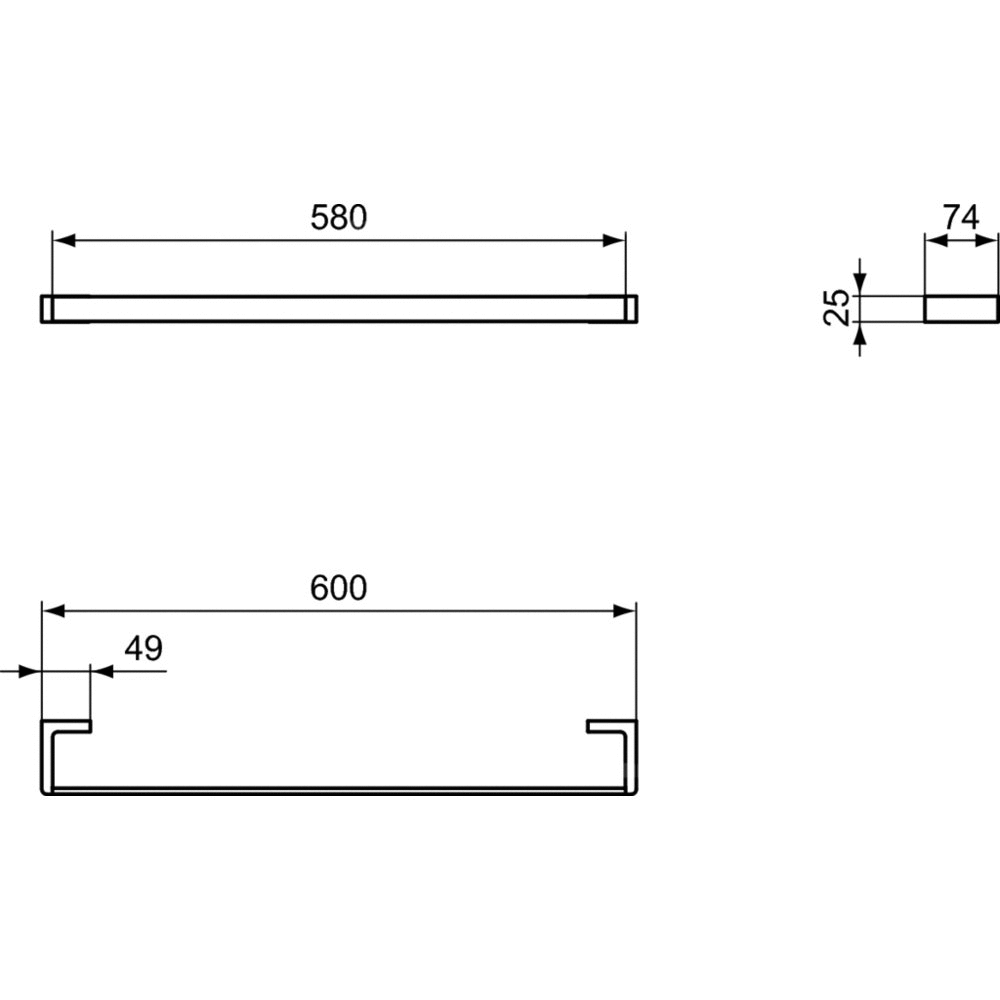 Poręcz na ręcznik pojedyncza 60 cm, Squared. Zestaw montażowy w komplecie. Dostępne wykończenia: - technologia galwanizacji (AA), - technologia PVD (GN, A2, A5).