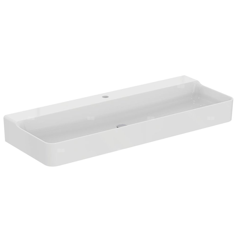 Umywalka mocowana do ściany bez przelewu. Opcjonalnie: rekomendowany zestaw montażowy WW965340, dekoracyjny syfon G1 1/4 E0079AA (do montażu z/bez pólpostumentu lub podstawowej szafki), zawór kątowy odcinający A3491AA; Rozeta do syfonu G1 1/4 (do montażu z baterią bez korka automatycznego) - B4801AA.