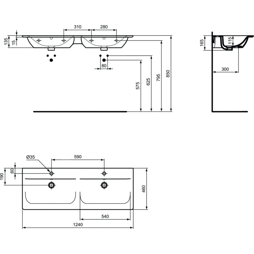 2 otwory na baterie. Indywidulane opakowanie. Możliwość skompletowania z meblami Connect Air lub z syfonem dekoracyjnym. Zalecane dodatkowe elementy: Brak zestawu montażowego, rekomendowany zestaw typu M10 x 140 mm (WW965340) - konieczne 2 zestawy montażowe. Syfon dekoracyjny do umywalki G1 1/4 (E0079AA). Przyłącze kątowe dekoracyjne (A3491AA). Syfon G1 1/4 (A2305AA). Przyłącze kątowe (B7883AA). Rozeta do syfonu G1 1/4 (B4801AA).