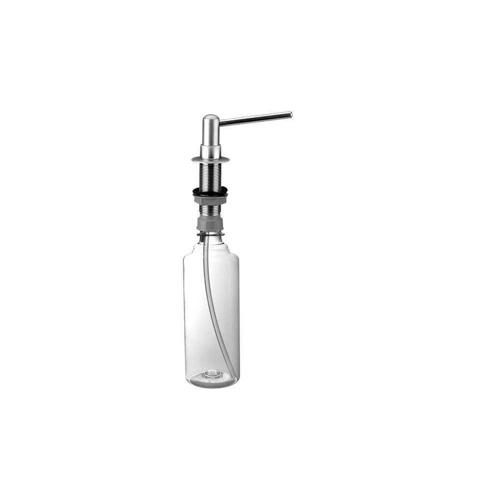 Dozownik do płynów mocowany w blacie, zlewozmywaku lub umywalce, Element dozujący mosiądz STAL SZCZOTKOW.