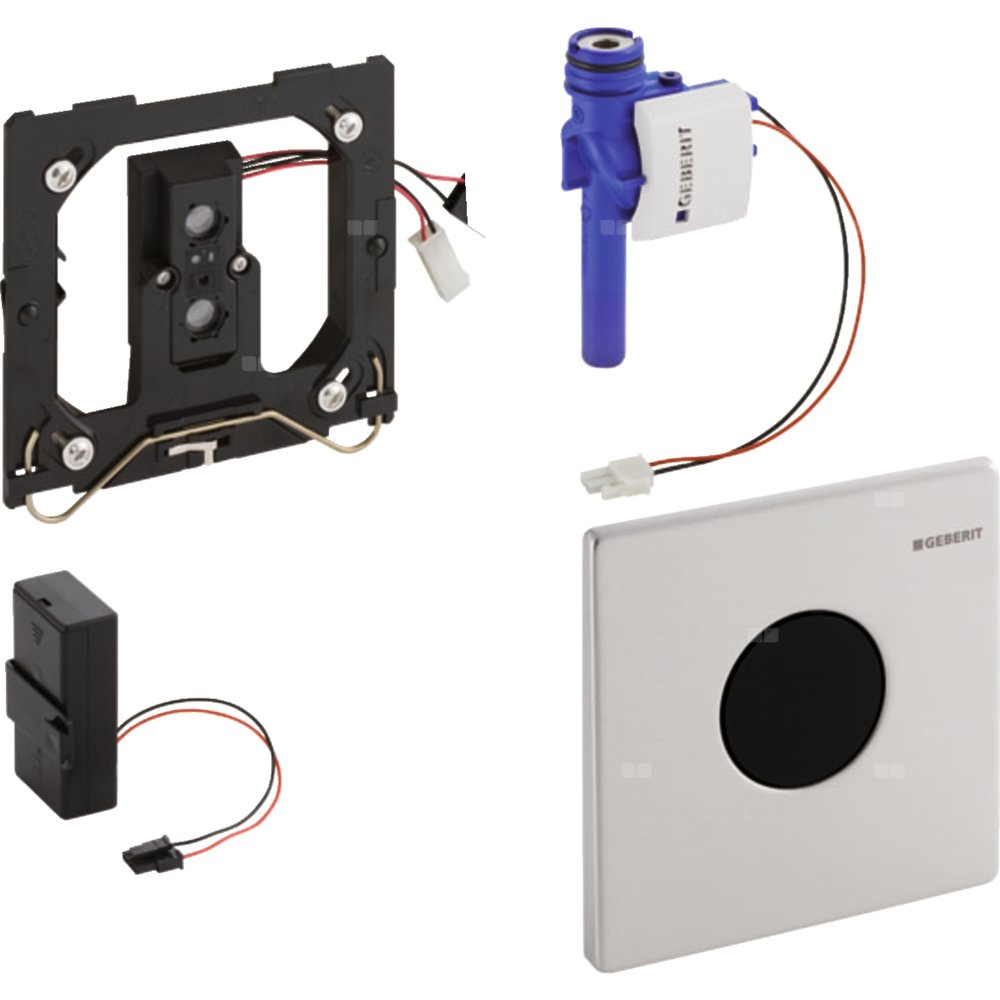 Elektroniczny zawór spłukujący Geberit do pisuaru, zasilanie bateryjne, Mambo, stal nierdz., okrągły