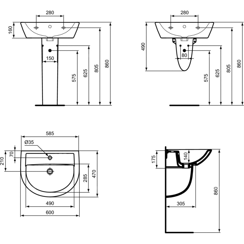 Umywalka Eurovit z centralnym wybitym otworem na baterię oraz przelewem. Do montażu z postumentem R2066 lub półpostumentem W3330. W opakowaniu kartonowym. Sprawdź listę dostępnego opcjonanego wyposażenia w katalogu/cenniku.