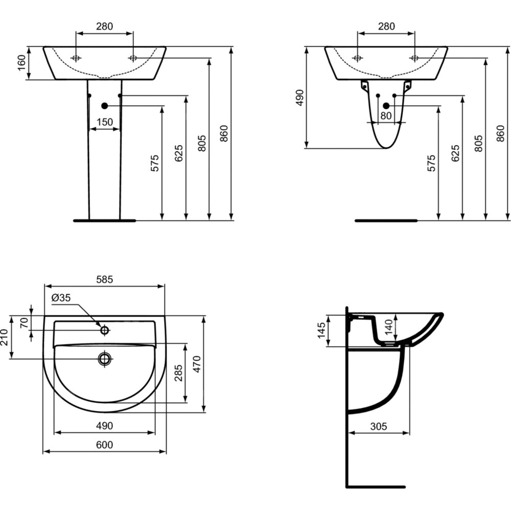 Umywalka Eurovit z centralnym wybitym otworem na baterię oraz przelewem. Do montażu z postumentem R2066 lub półpostumentem W3330. W opakowaniu kartonowym. Sprawdź listę dostępnego opcjonanego wyposażenia w katalogu/cenniku.