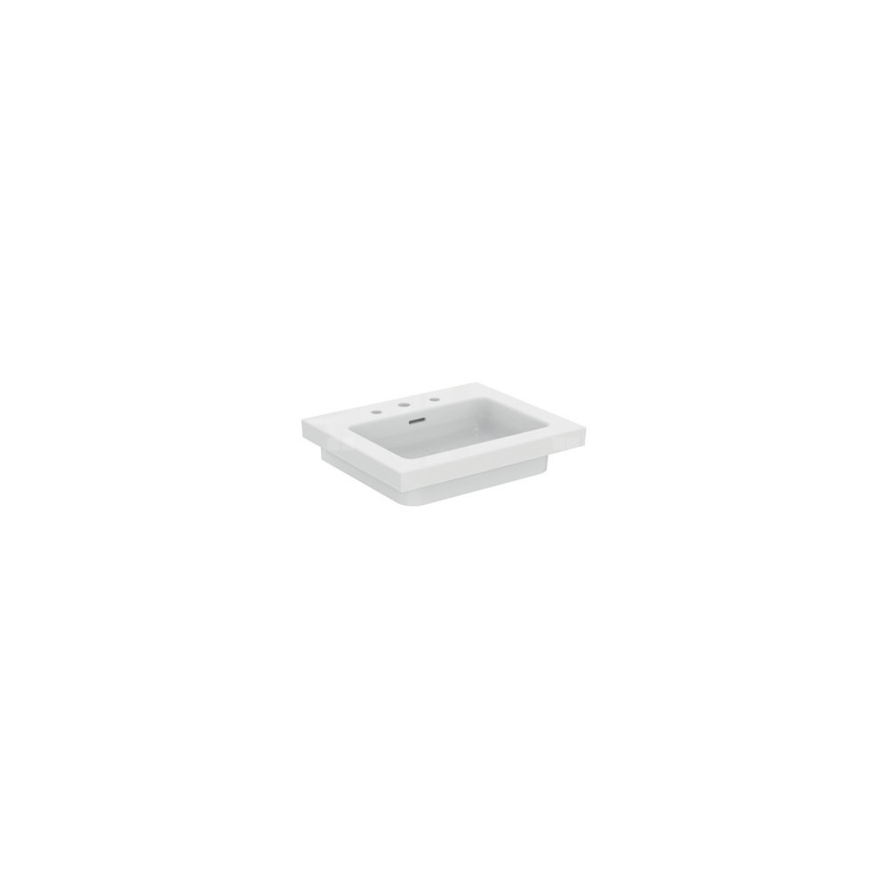 Umywalka Extra z powierzchniami bocznymi z 3 otworami na baterię, z przelewem (kształt szczelinowy). Do montażu z: szafkami z powierzchniami bocznymi Conca lub samodzielnie z dekoracyjnym syfonem. Sprawdź rekomendowane wyposażenie i możliwe kombinacje w katalogu i cenniku Atelier Collections.