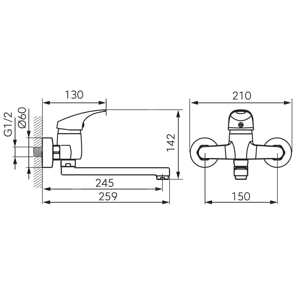 FERRO ONE bateria zlewozmywakowa ścienna, chrom