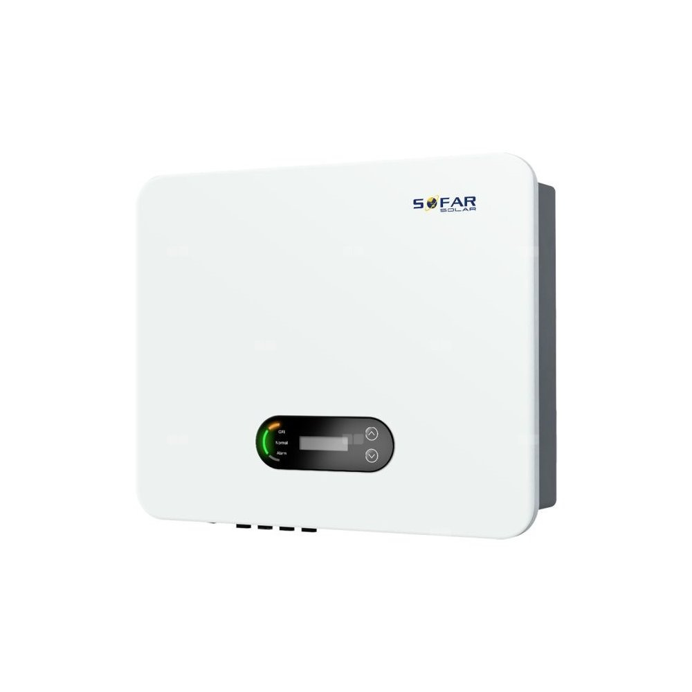 Inwerter Sofar Solar 6.6KTLX-G3 dzięki wysokiej sprawności, intuicyjnej i szybkiej instalacji, a także 12-letniej gwarancji w standardzie, zyskał dużą popularność na polskim rynku. Inwertery Sofar Solar zbudowane są z najwyższej jakości komponentów elektronicznych czołowych producentów jak m.in.: IGBT: Fairchild Semiconductor/Infineon, IC: On Semi / Texas Instruments, kondensatory: Nippon Chemi-Con/nichicon oraz MCU: Texas Instruments/ NXP. Sofar Solar serii KTLX-G3 to trójfazowy inwerter, który doskonale sprawdzi się do solarnych instalacji dachowych oraz małych elektrowni gruntowych. Stopień ochrony IP65 umożliwia montaż inwertera na zewnątrz budynku. Cechy wyróżniające produkt: Maksymalna sprawność: 98,4% Szeroki zakres napięć zasilania po stronie DC Wbudowana funkcja zerowego eksportu mocy do sieci publicznej Wysoko precyzyjny algorytm wyszukiwania MPPT Wbudowany wyłącznik obciążenia prądu stałego DC Zakres temperatur otoczenia: -30 + 60 stopni C Posiada zabezpieczenie przeciwko pracy wyspowej oraz ochronę przed odwróconą polaryzacją Obsługa i instalacja: Prosta instalacja „Plug&Play” Inteligentne monitorowanie mocy czynnej i biernej Komunikacja RS485 + Bluetooth w standardzie Stopień ochrony: IP65 Nierdzewna, aluminiowa, lekka obudowa Kompatybilność z programem PVSol Polskojęzyczne wsparcie techniczne Użytkowanie: Intuicyjna i funkcjonalna aplikacja w języku polskim Czytelny wyświetlacz graficzny LCD Przechowywanie danych do 25 lat Poziom hałasu: <40 db Wymiary: 430 x 385 x 182 mm Waga: 17 kg