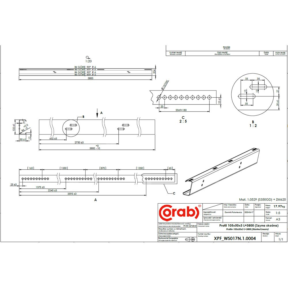 Szyna skośna L3800