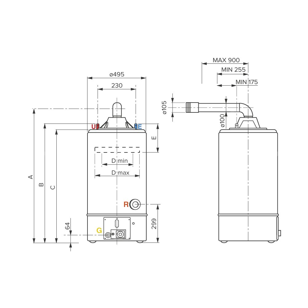 Koncentryczne wyjście powietrzno-spalinowe Ø 60/100 mm – Maksymalna długość 90 cm zapewnia efektywne i bezpieczne odprowadzanie spalin.