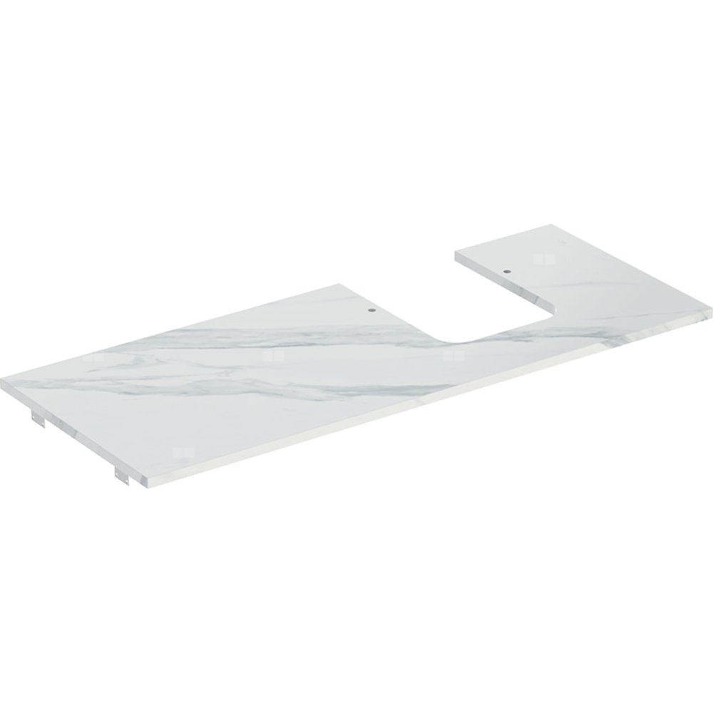 Geberit ONE Blat pod umywalkę, wycięcie z prawej strony, do umywalki stawianej na blat w kształcie misy, B120cm, H2cm, T47cm, gres szkliwiony, biały, imitacja marmuru