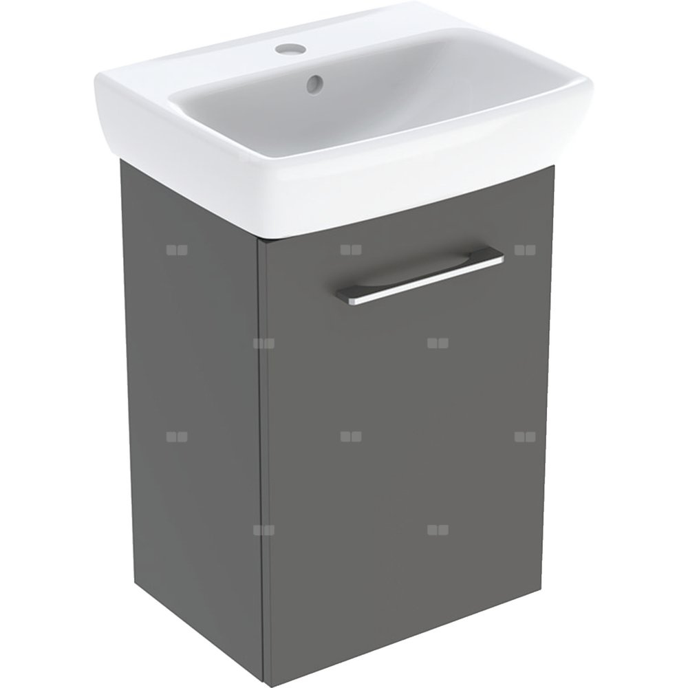 Geberit Selnova Square Zestaw szafki pod umywalkę , B45cm, H64.9cm, T35cm, z jednymi drzwiami, lava, z umywalką kompaktową, z przelewem, z otworem na baterię
